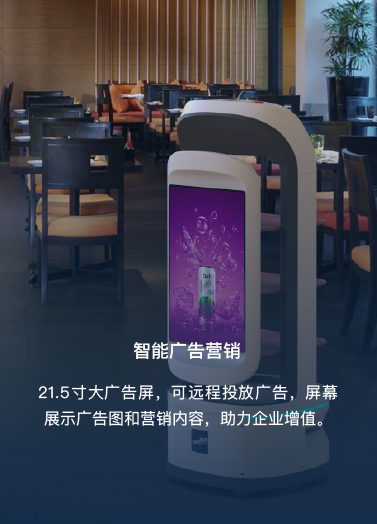 小企鹅拥有21.5寸大广告屏,可实现大范围感知,并具备自主避障功能,精准完成配送任务。小企鹅可以满足不同商业场景的应用需求,还能在送餐时支持广告投放和数据收集,并在云端进行大数据分析,不仅为餐厅起到降本增效的效果,也可成为餐厅塑造营销亮点和竞争优势的机会。